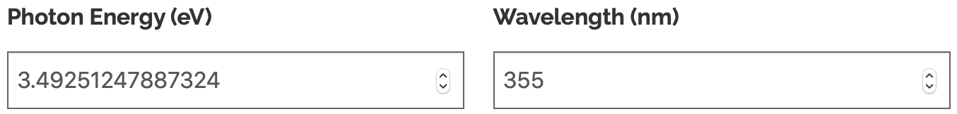 As is clear from above, they used a 355nm laser (here are some commercial products at this photon wavelength) by using this calculator we can see that the energy of a 355nm laser is a little over 3.49eV.