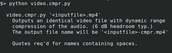 The output file name will be '<inputfile>-cmpr.mp4'