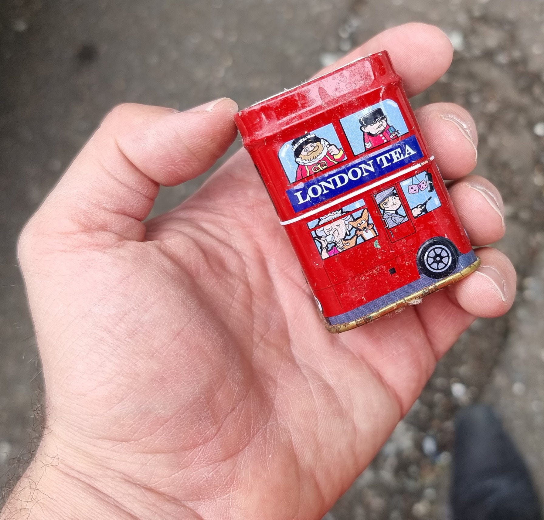 We had no time to open the very many boxes and bags in which his things had been stowed, other than to make better use of space where we could. Periodically however, things I knew that were clearly used in his LION experiments appeared, like this souvenir tea tin, typical of that which he used for holding the dental x-rays when exposing them to a cooled reactor following a run.