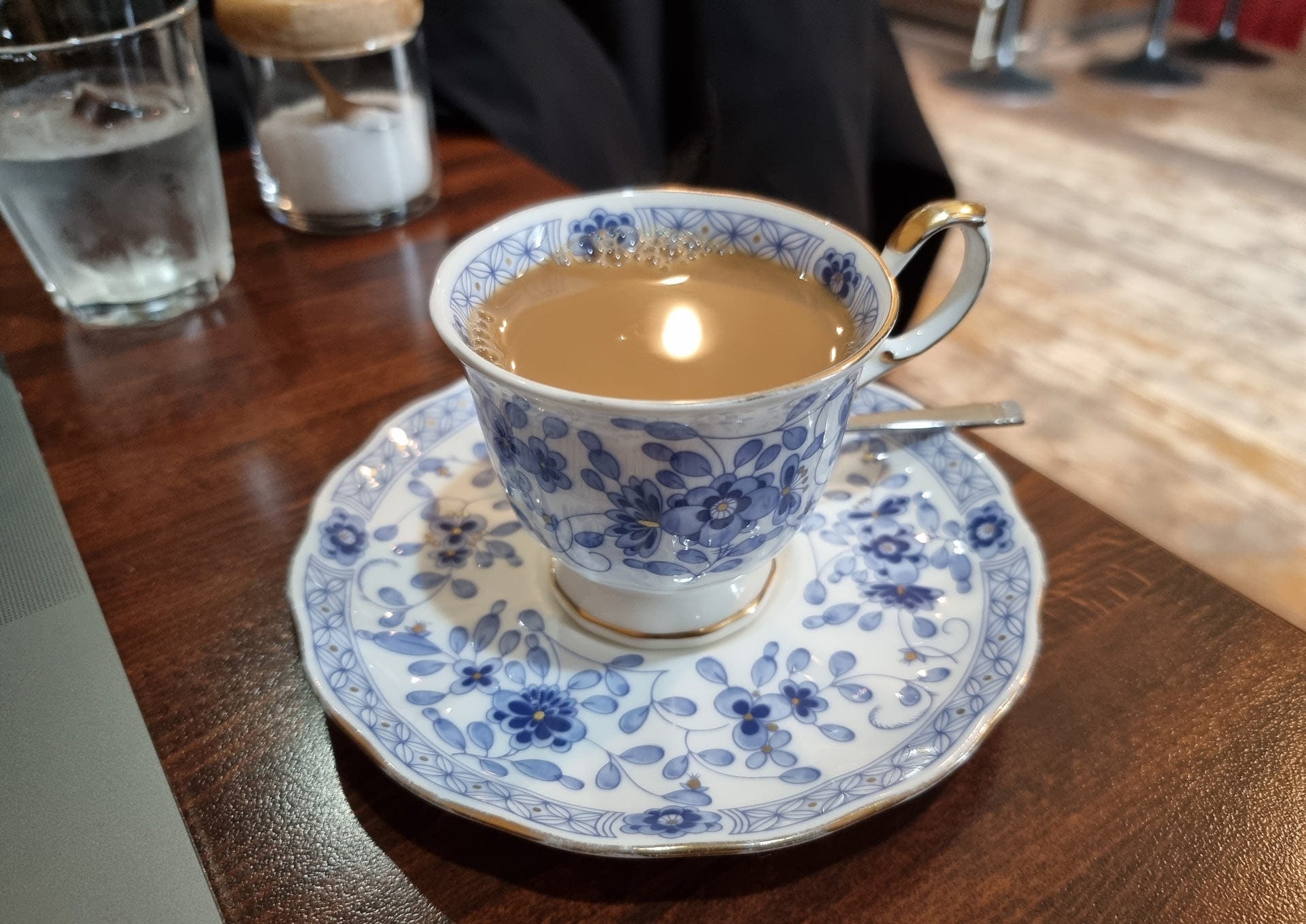 So I would go to a coffee shop and do the compositions, and Sho would take the Hitachi to a bunch of second had stores and see if he could off-load it. I located a place where I could work and settled in after ordering my wake up juice. In a little while I was presented with coffee, in a way I had never been presented before in a public coffee shop, a lovely decorated china cup and saucer…