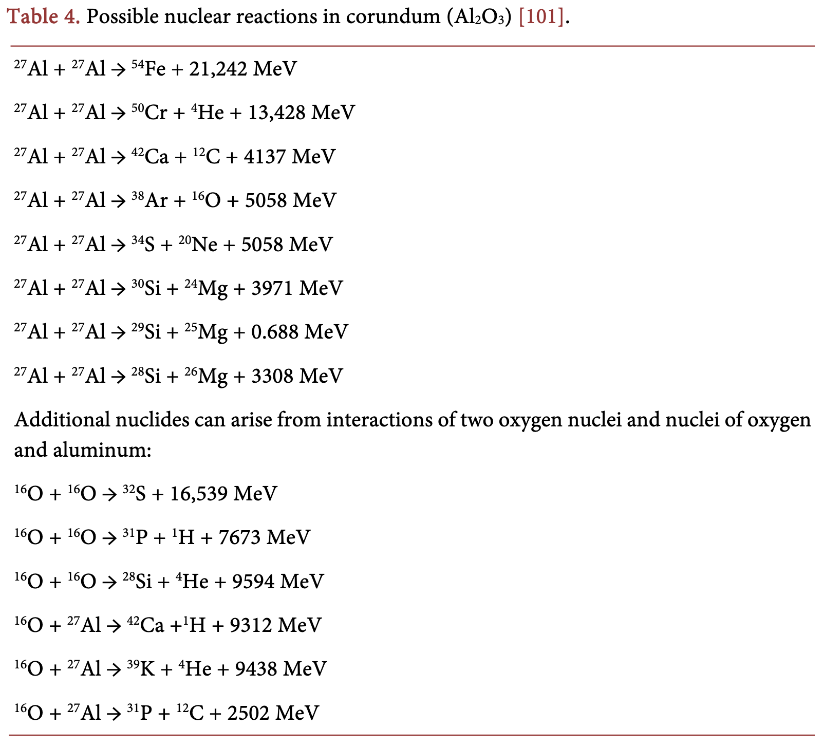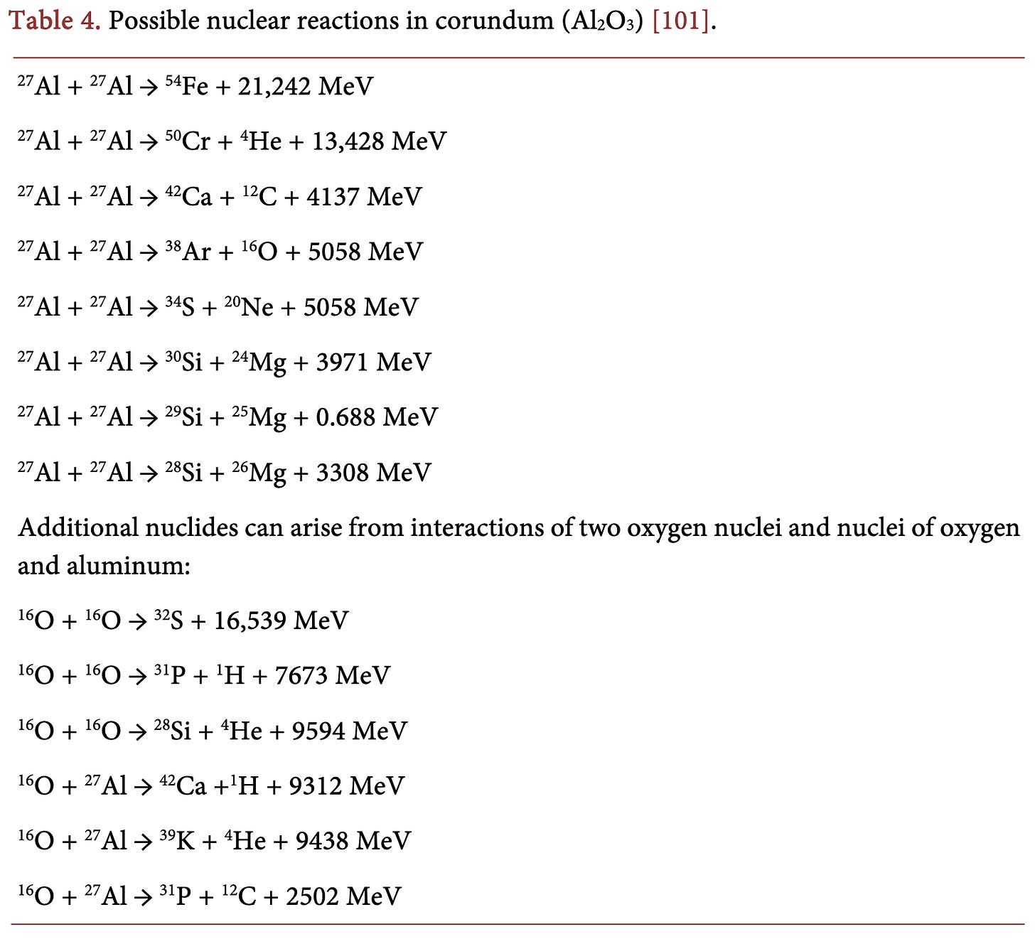 Table 4 lists possible 1st iteration nuclear reactions in CORUNDUM (Al2O3)