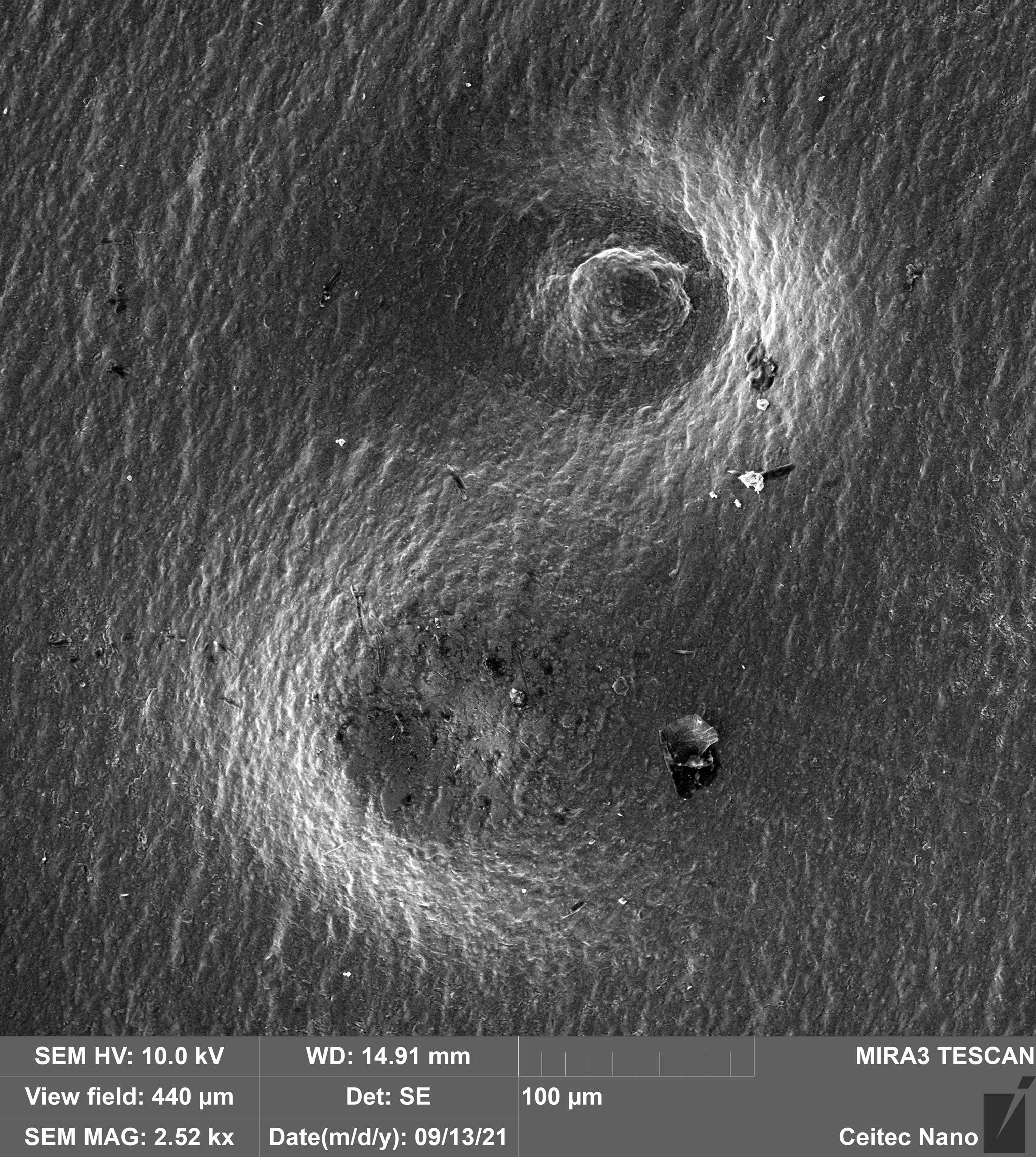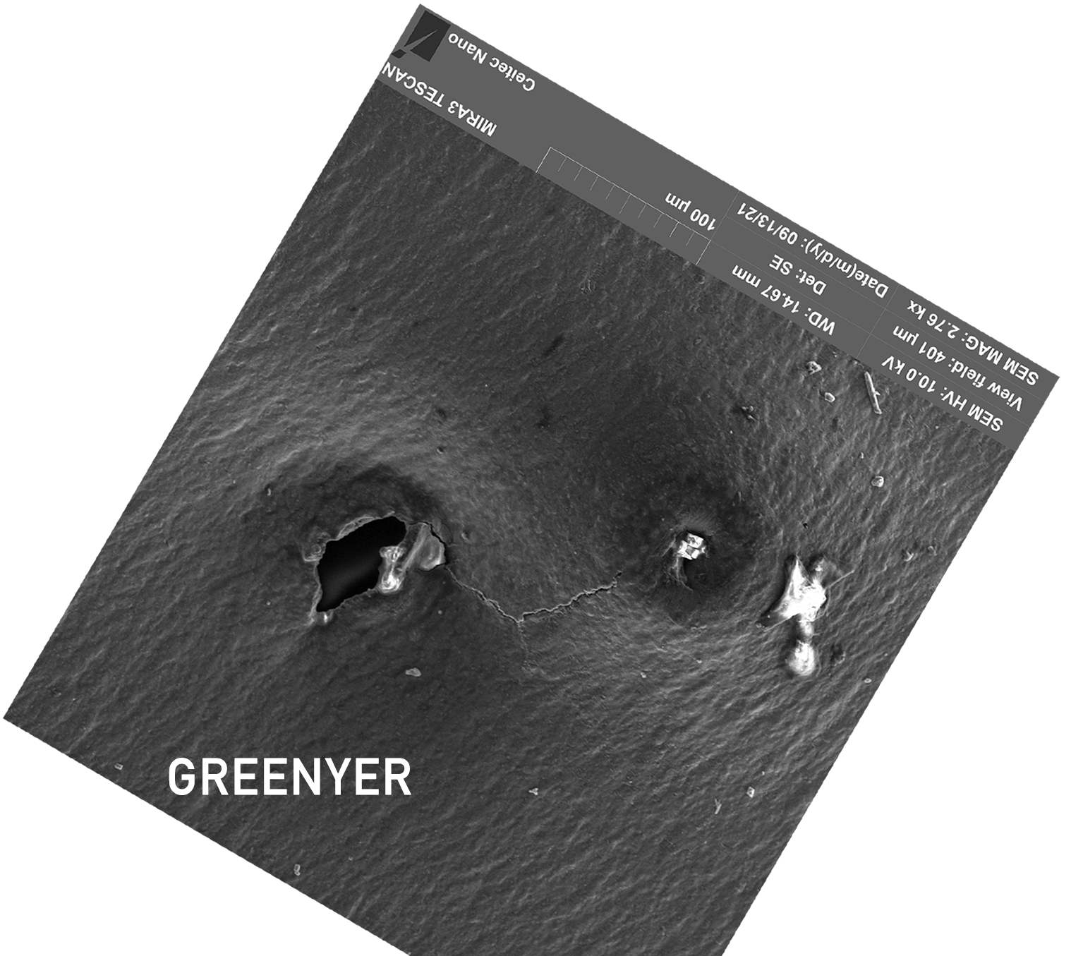 Note: that in Fig 4. above and in Fig 6. below, the synthesised material blends seamlessly into the Aluminium. There is often a little crack there also in an arc around it. Also, there is charging material precisely outside the right centre black circle and between that and the middle black circle. The ‘owls beak’ drawn through the centre of the right vortex to the middle circle, defines Phi. The elements on both sides appear mostly near the inside of this line and the mirror of it on the other counter vortex.