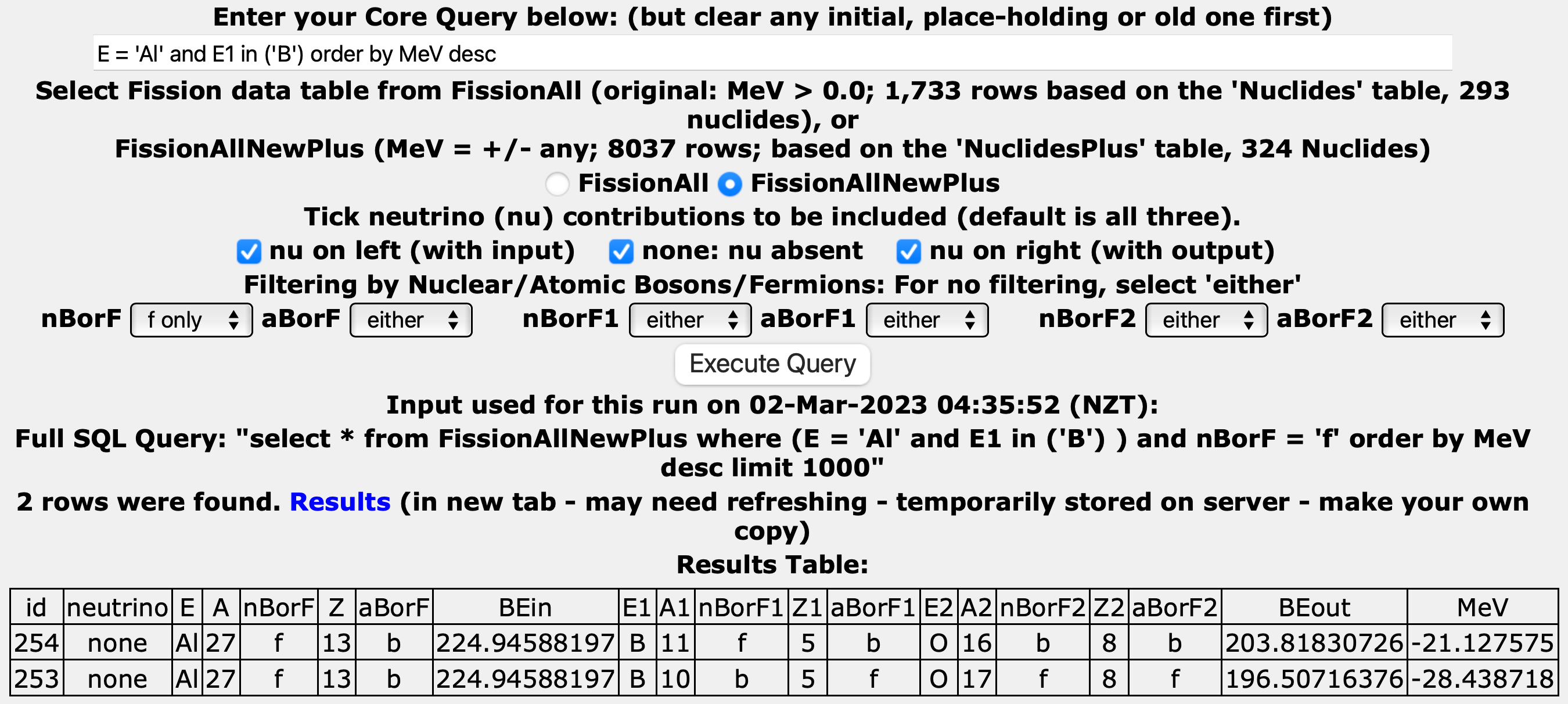 NOTE1: To allow for negative MeV reactions, we need to select the "FissionAllNewPlus” radio button