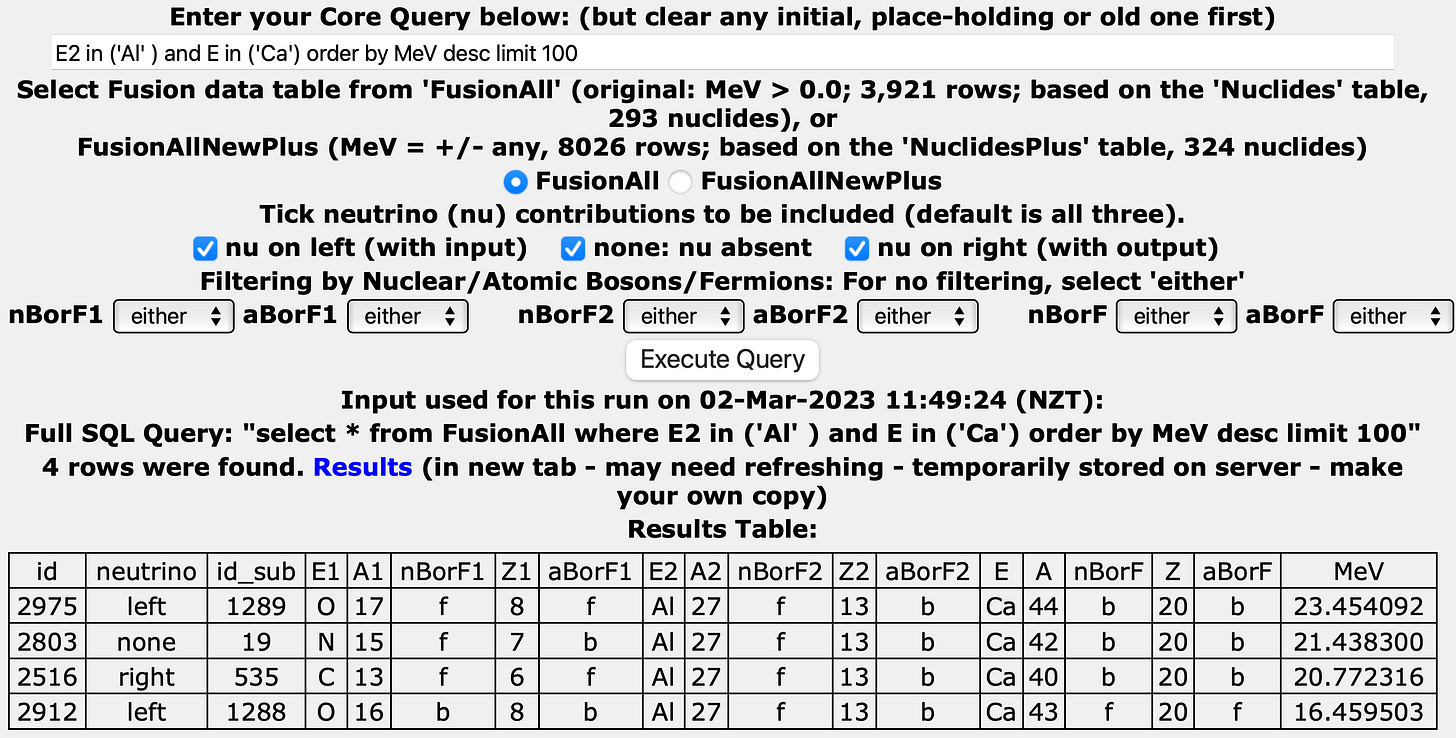 We will use the Parkhomov inspired MFMP reaction tables, kindly programmed by Philip Power, to examine possible reactions involving Al leading to the production of Ca and B.
