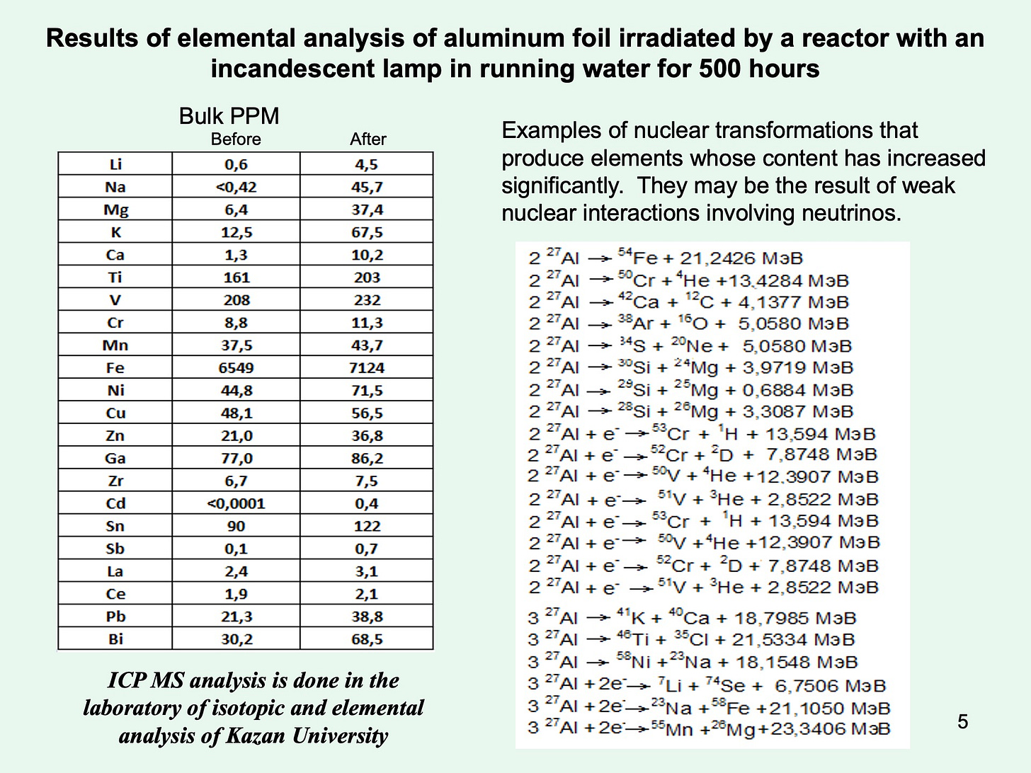 Dr. Parkhomov shares latest findings pointing to lighter elements having higher net yields