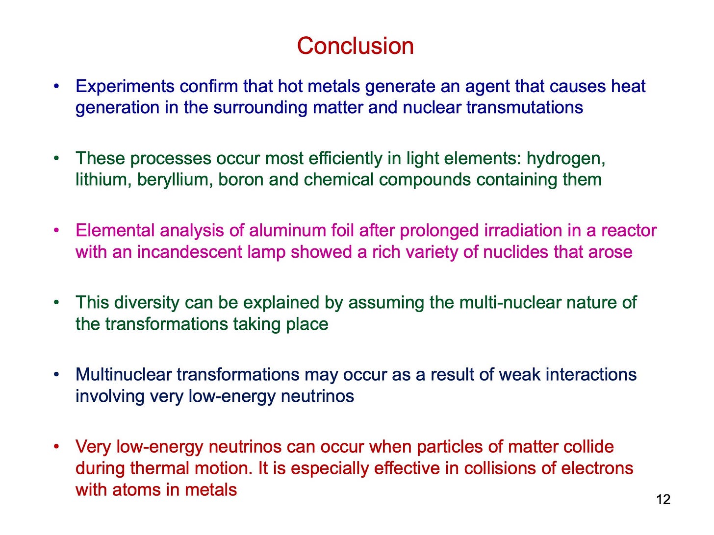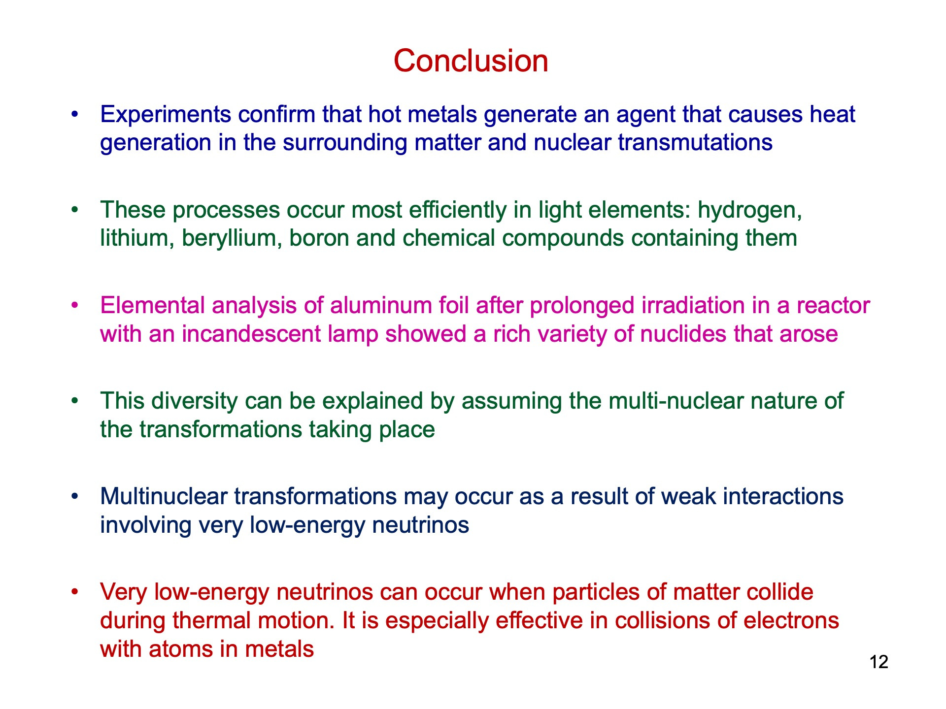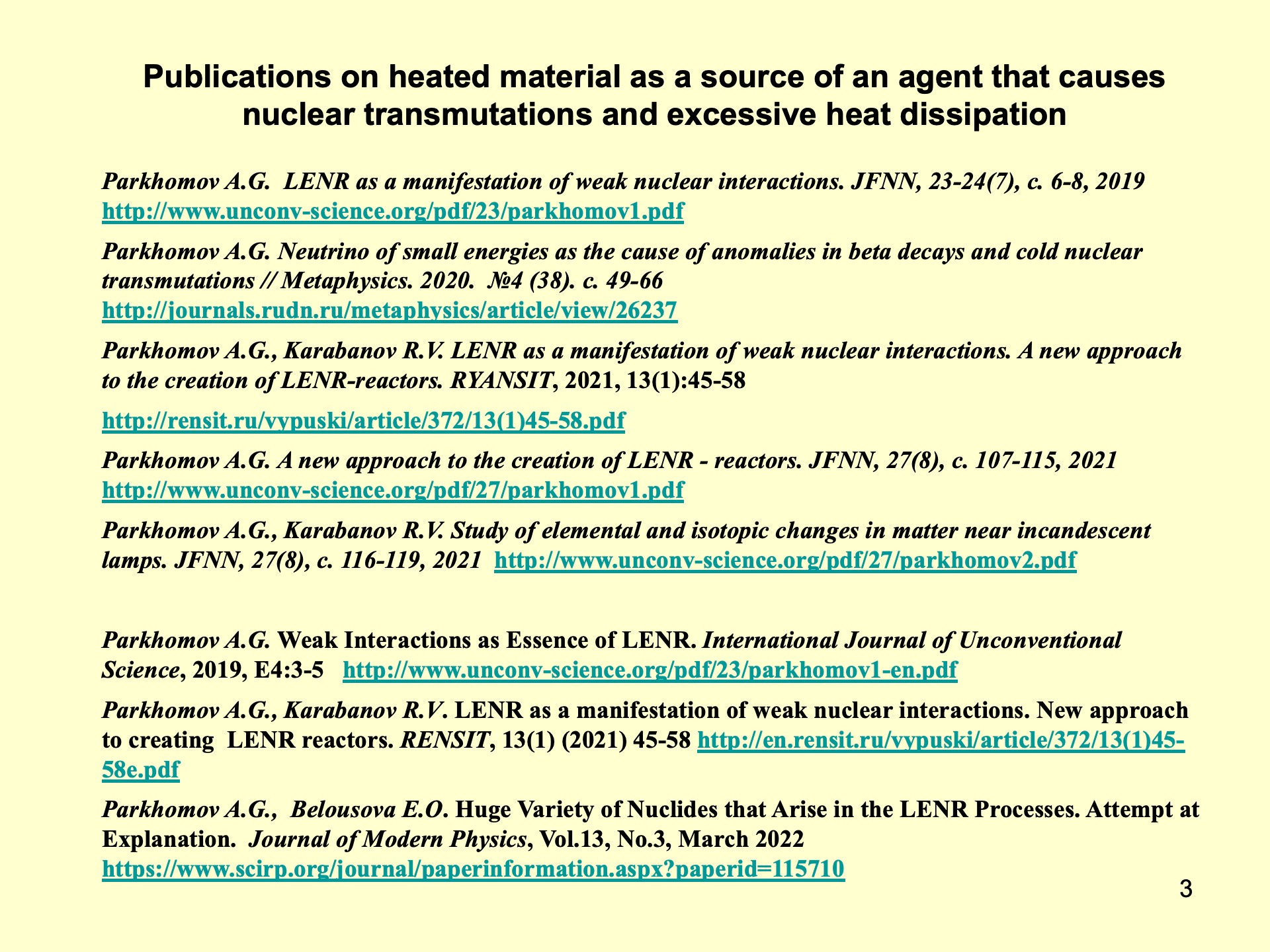 Dr. Alexander Parkhomov shared his latest findings on apparent W filament lightbulb induced transmutation of matter. In this work he shows a potential new detection method and by testing a wide array of materials, he finds that lighter elements result in a greater thermal gain in the system.