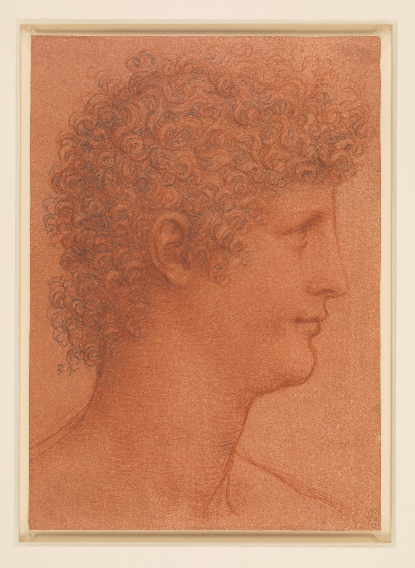 Below is the sketch I believe that Leonardo had a problem with ears, as a 3d sculptor and later 3d animator, I believe that the ear is too small in this work.
