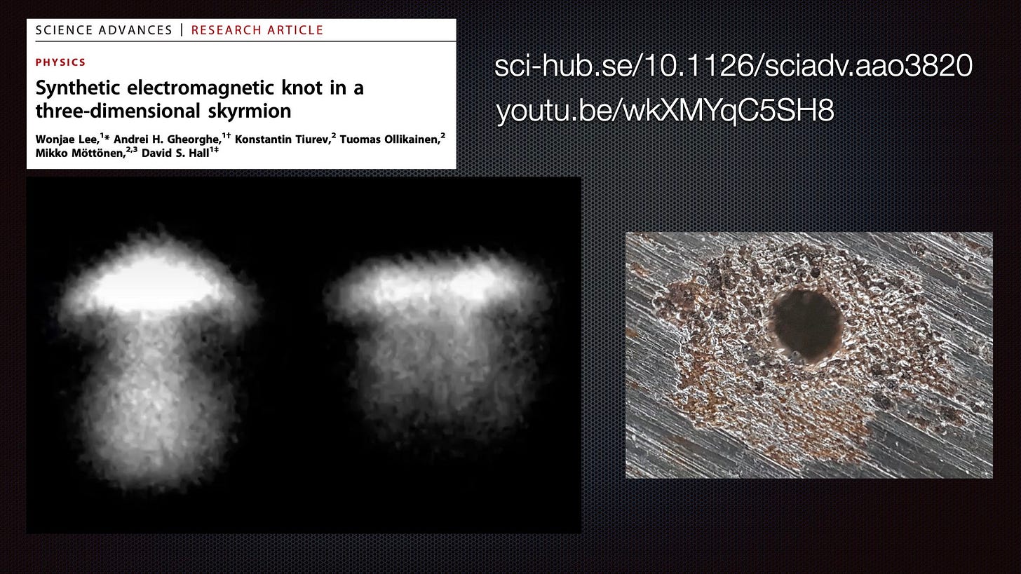 I had again referred to a Shankar skyrmion formed in 2018 BEC coherent matter research [3] in reference to a very similar structure on the MFMPs Hutchison sample 10 - “Ball Burn” made by John Kenneth Hutchison in 1986.