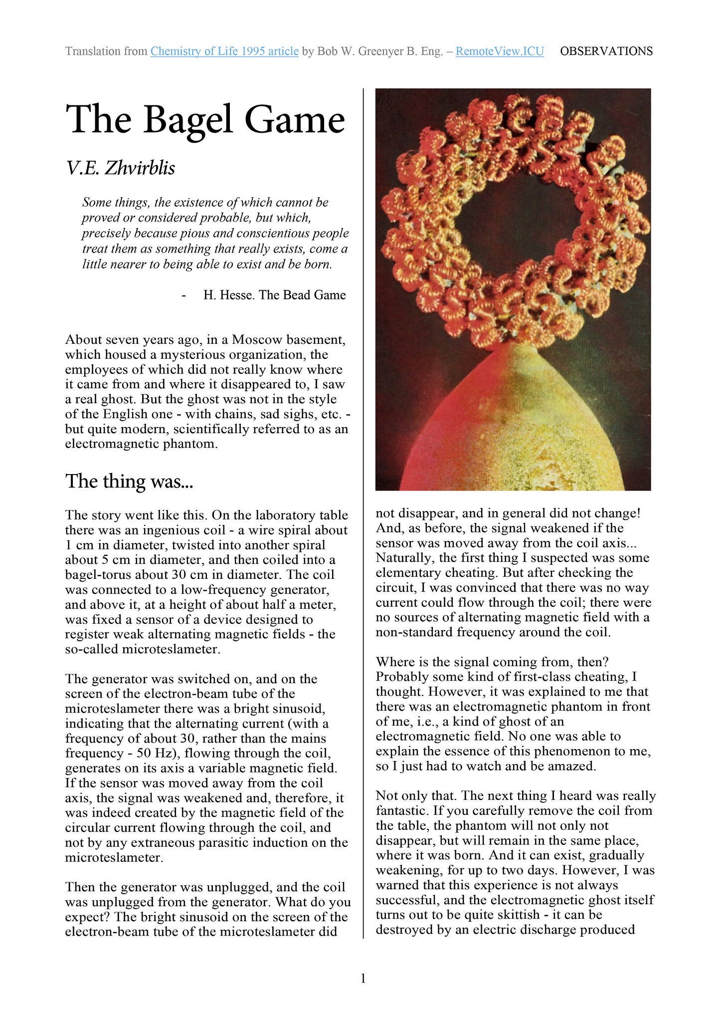 A read-through and discussion about the now translated Soviet-era energetics research article "The Bagel Game", its sound theory and the implications now we have shown physical proof in a range of systems.