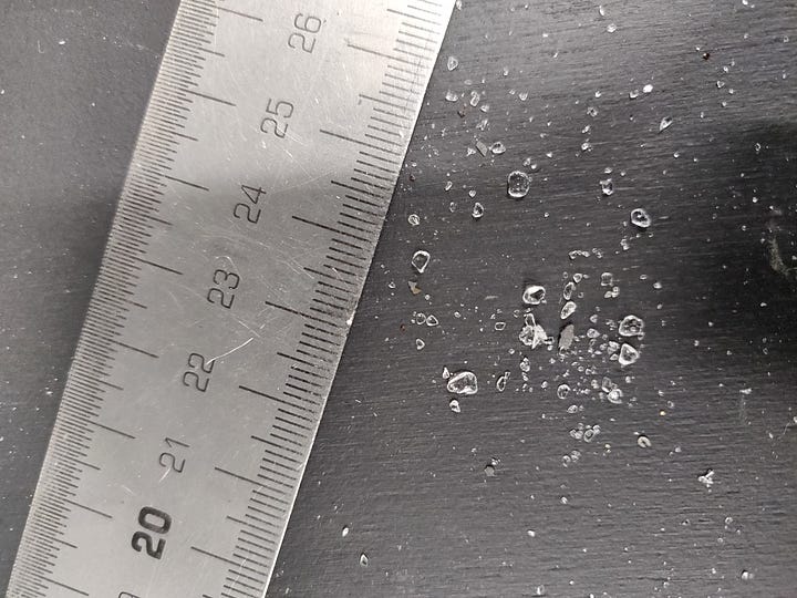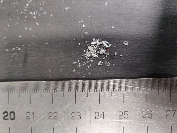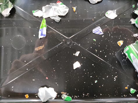 Glass bottle 2 - I took of the label, since that held the first bottle together, large chunk fell out quite early but there was a lot of very very fine glittering dust in, underneath and around the windhexe after these 2 tests.